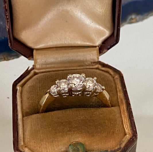 Vintage 14K Natural Five Diamonds Ring Band Yellow Gold Sizable 1 Ct