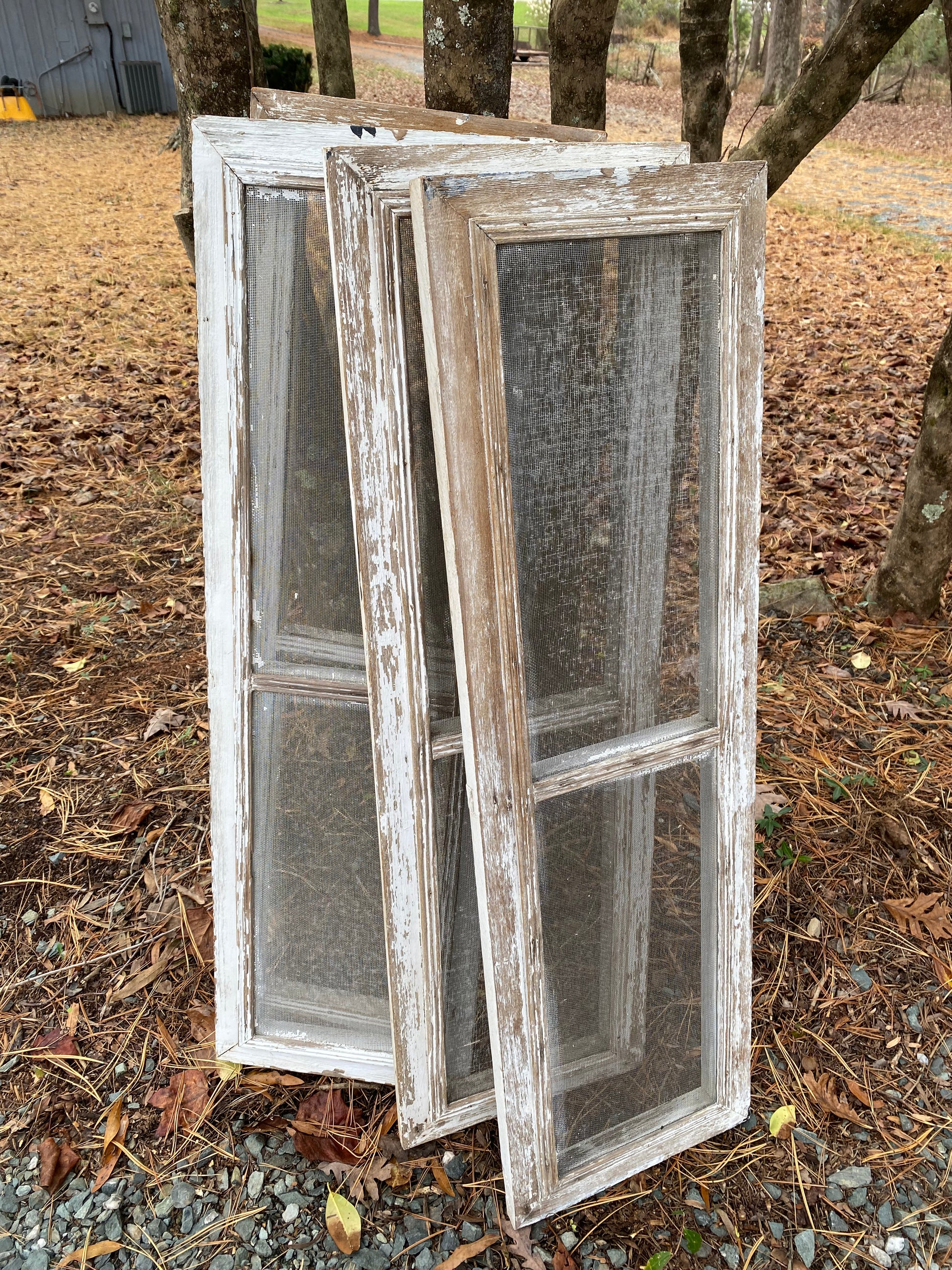 Please read ad description. Note: This item is local pick up only, please message Jon for pick up day/time. These farm house chippy window screens are solid and intact. All original screens. These screens are perfect for your diy project. They’d also make great display for your jewelry. As supplies last. Measurements: L=41 1/2”, H=12 1/2”. Thanks for shopping with us at Upcycle Boutique Va. and The Salvage Store.