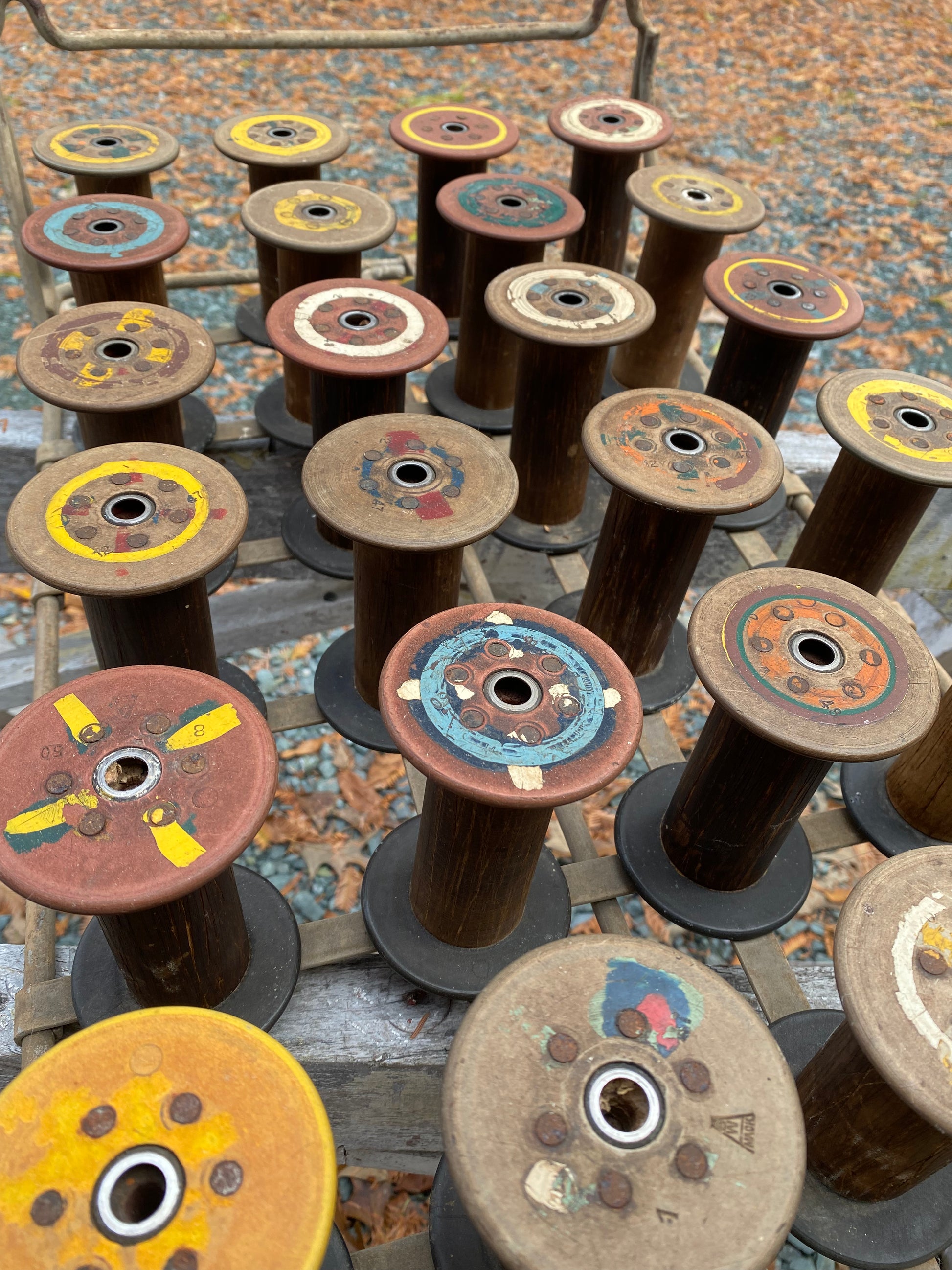 Please read ad description. Note: This item is local pick up only, please message Jon for pick up day/time. These large industrial metal spool trays are from about 1930’s. These trays are made to stack upon each other and are made of iron. The spools are made of wood and heavy plastic. The colors are all original to the spools and all are unique. No two trays are the same. As supplies last. Measurements: (The spool) H=4 1/2”, W=2 3/4”. (The Tray) L=27”, H=7”, W=15 1/2”. Thanks for shopping with us at Upcycle Boutique Va. and The Salvage Store.